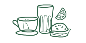 Kaffe/te, ingefärsshots, koktägg, rågfralla med ärtröra